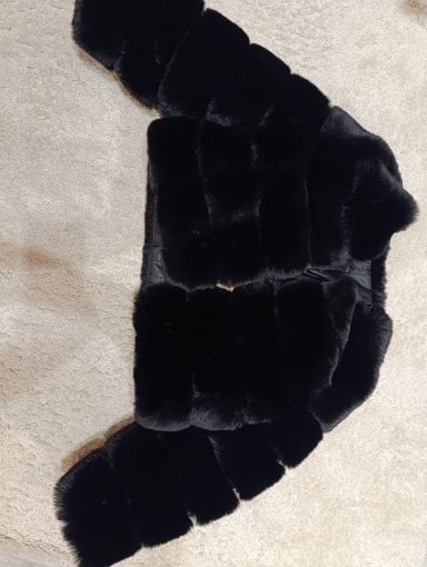 C'est vraiment super, la taille est parfaite. J'ai pris du XL et je fais du 38 habituellement. La qualité est incroyable, on dirait de la vraie fourrure.